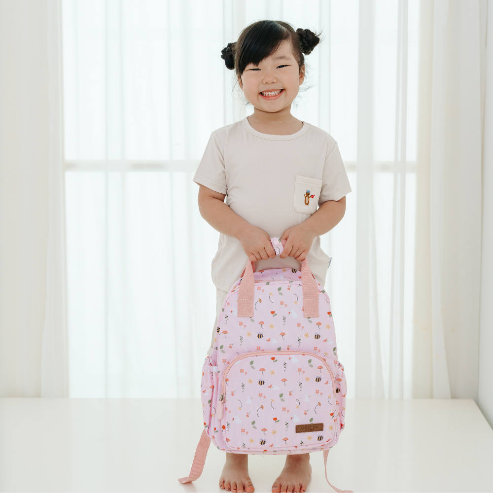 FLORAL BUNNYCompact for your little one to carry but roomy enough to hold all the essentials, this backpack is ideal for school adventures or a family outing. There is also a compartment to store essentials and a label holder for your little one name and details. It's eco-friendly and the recycled polyester makes cleaning a breeze.